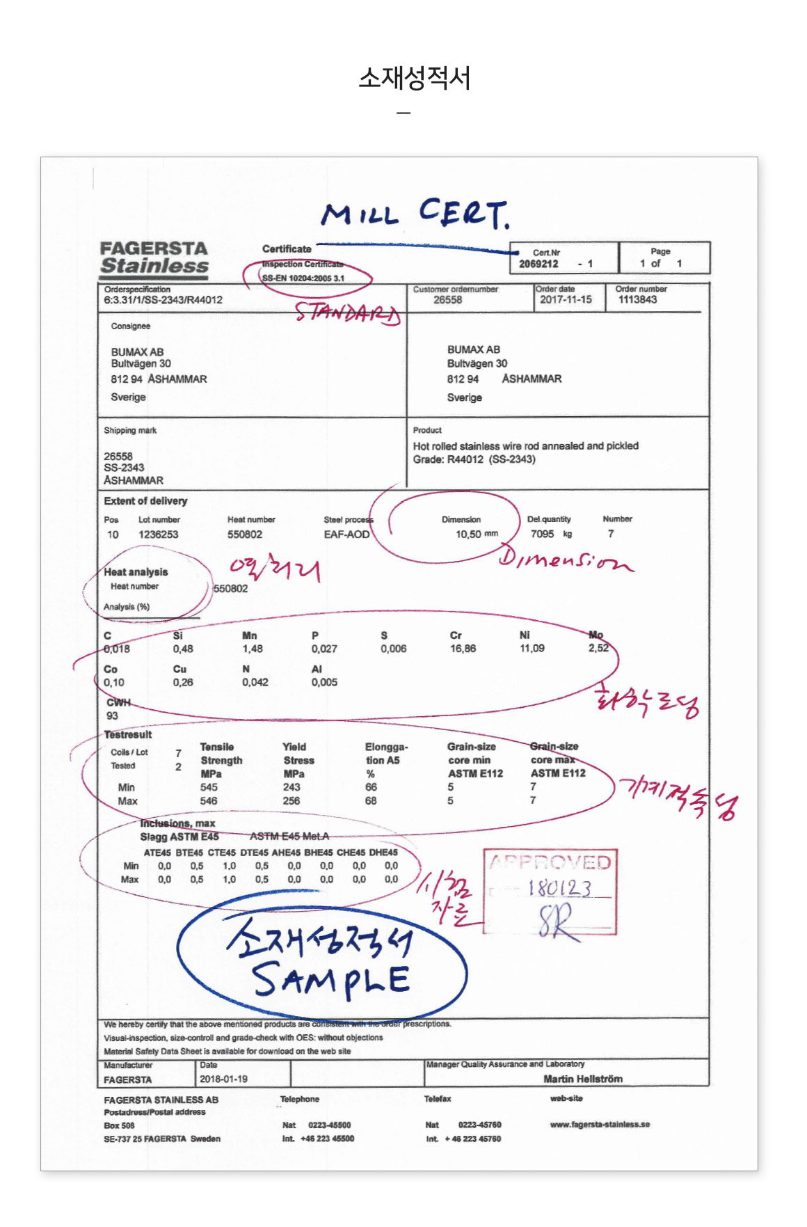 소재 성적서